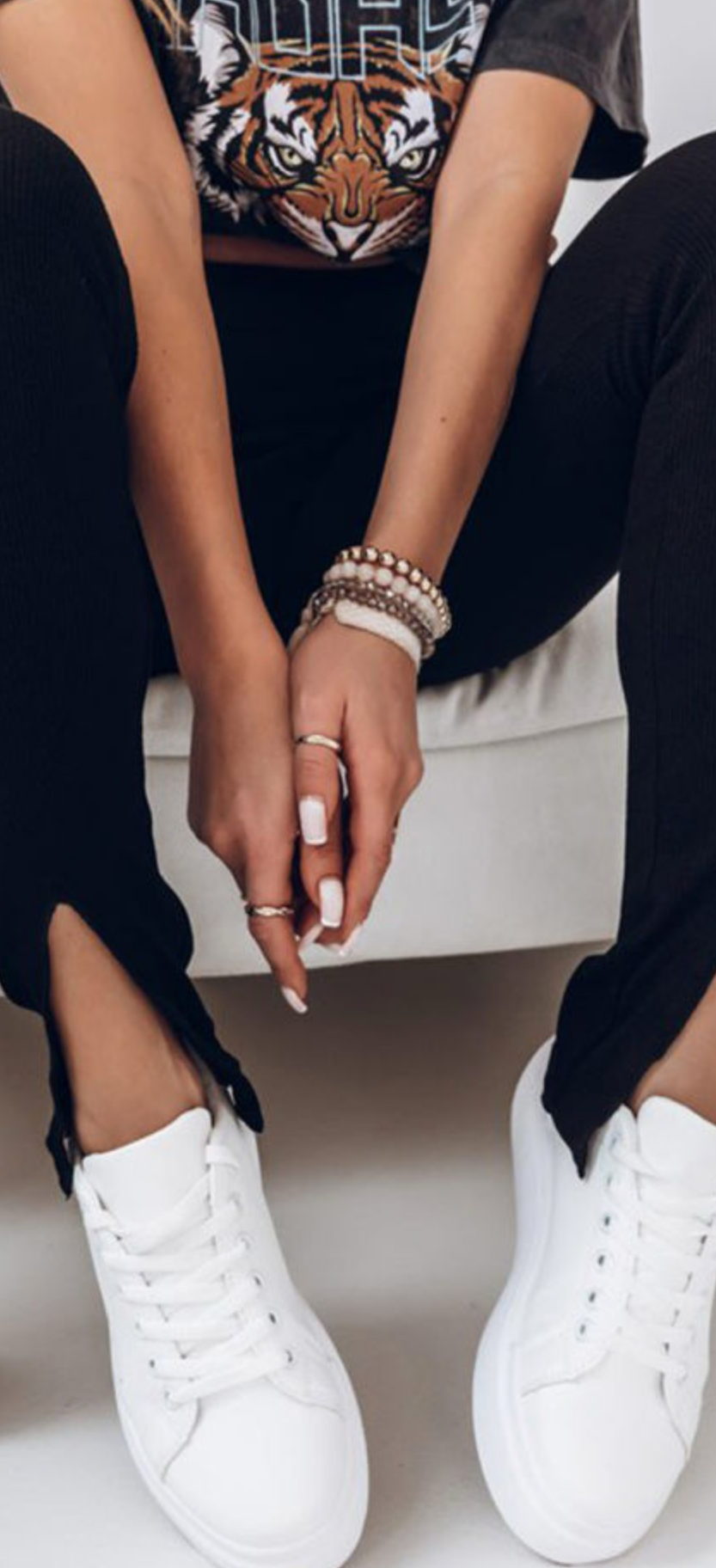 Ribbed leggings with ankle split leg. Casual, cool and soft!
