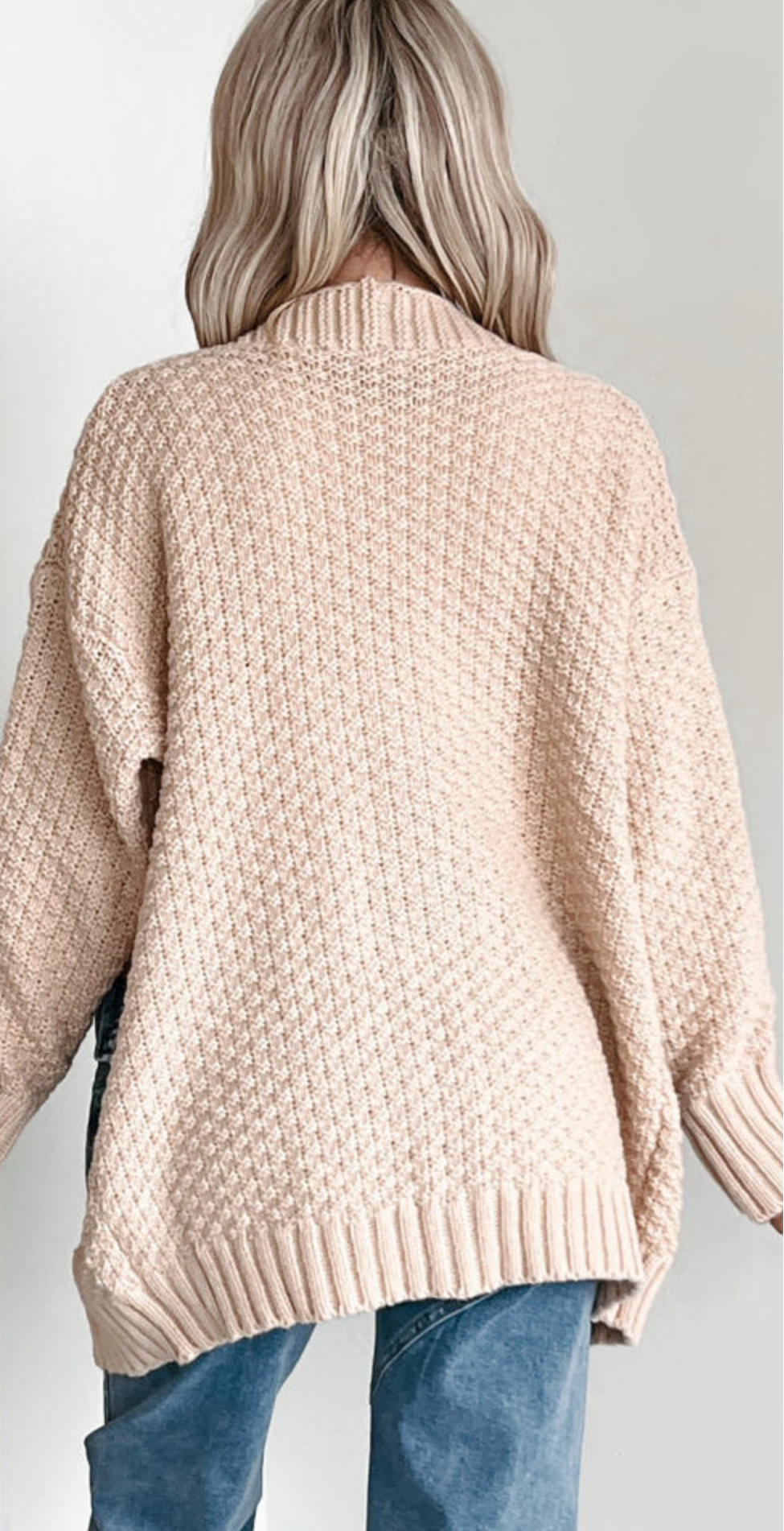 Gorgeous popcorn cardigan with denim pockets. Oversized and comfy! This cardi is on trend for fall!